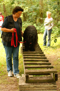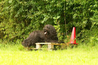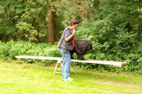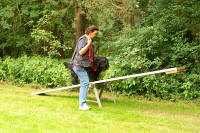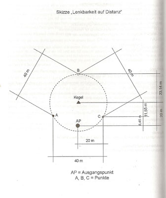 Die letzte Übung des Gewandheitsteils ist das sog. "Detachieren". Hierfür wird der Hund zu einem 20 m entfernt stehenden Kegel geschickt, von dort aus (ohne dass der Hundeführer seine ursprüngliche Position verlässt) zu drei Tischen, die sich je 20 m. rechts, links und vor dem Kegel befinden. Die Reihenfolge, in der die Tische anzulaufen sind, wird vor der Prüfung vom Richter bekannt gegeben. Auf jedem der drei Tische hat der Hund zu verharren, nach dem letzten Tisch hat er auf Kommando zum Hundeführer zu kommen und muss dort korrekt vorsitzen.
