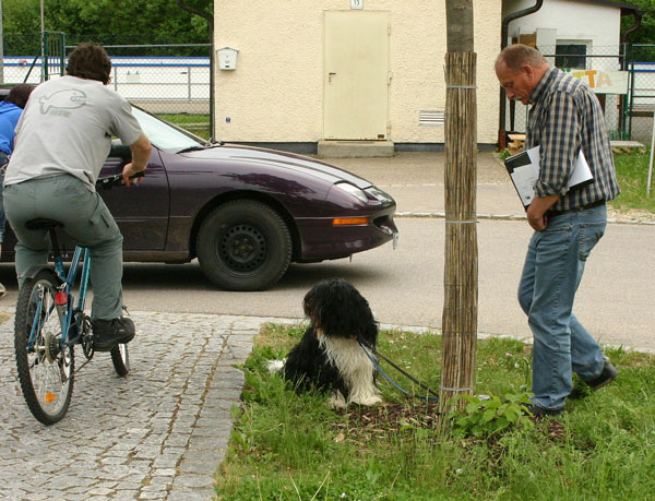 Shisha ist völlig unbeeindruckt beim Vorbeilaufen eines Joggers, eines Radfahrers,